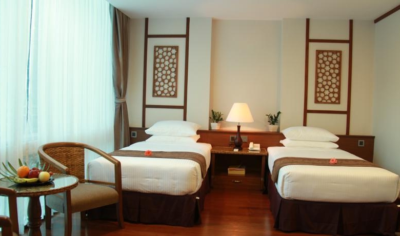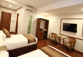 Les vastes chambres de luxe sont sympathiques et chaleureuses. Beaucoup de bois en teck local et des tissus locaux à créer un sentiment intime. Equipé avec des lits jumeaux, une table basse avec des fauteuils ou un Canapé convertible, cette chambre répond à tous les besoins pour se détendre après une journée touristique ou d'affaires.