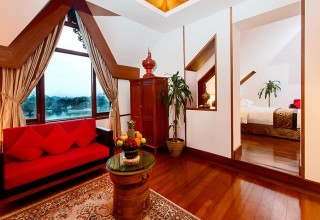 Les 2 suites présidentielles sont très spacieuses et disposent d'un jacuzzi. L'un d'eux est livré avec une véranda privée et d'un droit de jardin privé sur les rives du lac royal. L'autre, construit au deuxième étage, offre une grande véranda extérieure avec une tour d'observation privée qui peut être accessible uniquement à partir de la chambre. Tous deux ont une vue sur le lac avec vue sur la pagode Shwedagon. Les deux suites présidentielles sont très spacieuses et disposent d'un balcon et d'un pavillon où vous pourrez prendre le petit déjeuner ou le dîner avec vue sur le lac et la pagode Shwedagon.