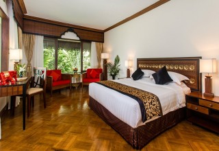 Chambres supérieures ont une vue sur les jardins. Les chambres sont équipées armoire, porte-bagages, coffre-fort, sèche-cheveux, mini-bar, salle de douche privative, télévision par satellite à écran plat, d'un bureau et d'un mobilier occasionnels, des équipements complets de salle de bains, entièrement climatisé et téléphone avec ligne international directe.