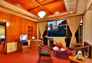 6 chambres Suite Junior sont prêts à vous servir un avant-goût du paradis. Les espaces de vie et salle à manger spacieux offrent amplement d'espace pour se divertir ou se détendre parfaitement adapté pour les affaires ou de voyages. Les balcons privés offrent une vue imprenable sur le jardin avant de l'Hôtel et la beauté naturelle environnante qui veulent un espace pour travailler, penser, ou tout simplement profiter du temps avec leurs familles ou proches.
