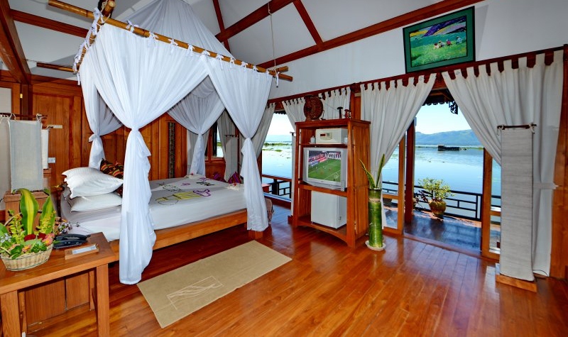 Les chambres sont spacieuses, confortables et de charme avec salles de bains considérables, y compris une douche extérieure. Les chambres donnant sur le lac sont particulièrement charmantes et donnent plus d'intimité par rapport aux chambres de la deuxième rangée. Le lac en face des chambres offre également une grande tache de coucher de soleil depuis la terrasse privée. Depuis c'est un hôtel flottant sur le lac, la seule option pour le dîner est à l'hôtel et cependant la nourriture peut être assez fade. Pour les repas plus authentique, la nourriture traditionnelle Shan peut être demandée à l'avance