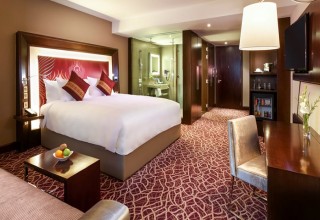 La chambre de luxe est livré avec un lit king size ou lits jumeaux Hollywood. Les chambres sont équipées d'une "TV LCD 40, WiFi, bureau, coin salon, coffre-fort et café / thé dans la chambre. accessoires de salle de bain comprend une douche de pluie et un sèche-cheveux.