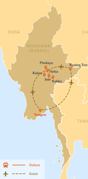 Yangon - Kyaing Tong - Lac Inle - Pindaya - Kalaw - Yangon