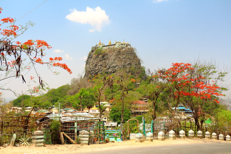 Le Mont de Popa joue un rôle important à la culture de Birmanie, sa religion et son histoire depuis les premiers temps. Son sanctuaire est dédié au culte des 37 Nats, les anciens esprits animistes birmans. Pour en savoir plus sur le culte des nats, vous monterez les escaliers vers le haut avec votre guide local. La vue sur la plaine Myingyan du haut du pic volcanique est impressionnante (l’escalade est facultative).